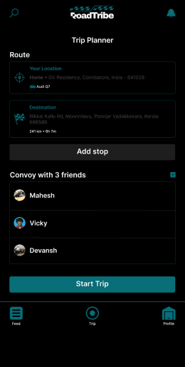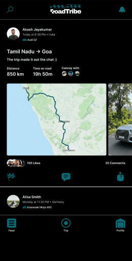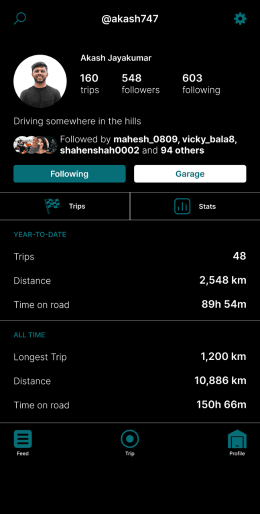 The Feed brings together trips from people you follow. Routes, moments, and journeys shared from the road.